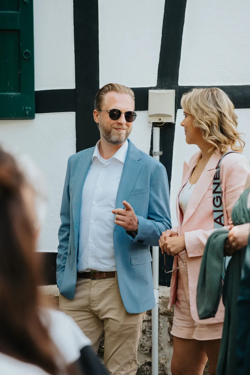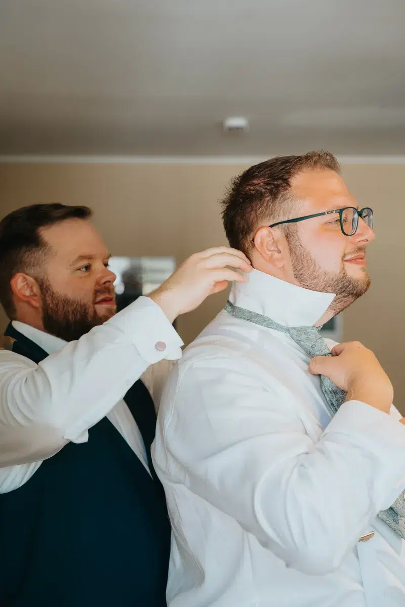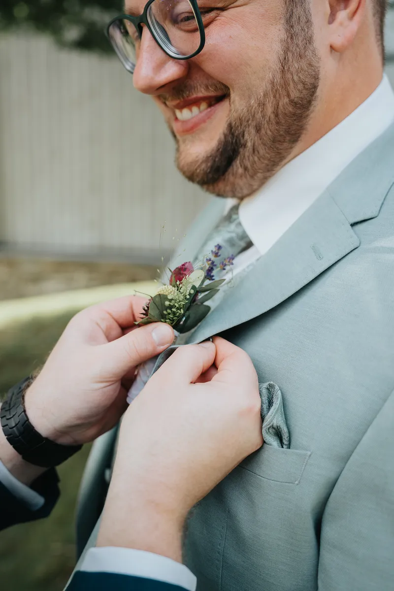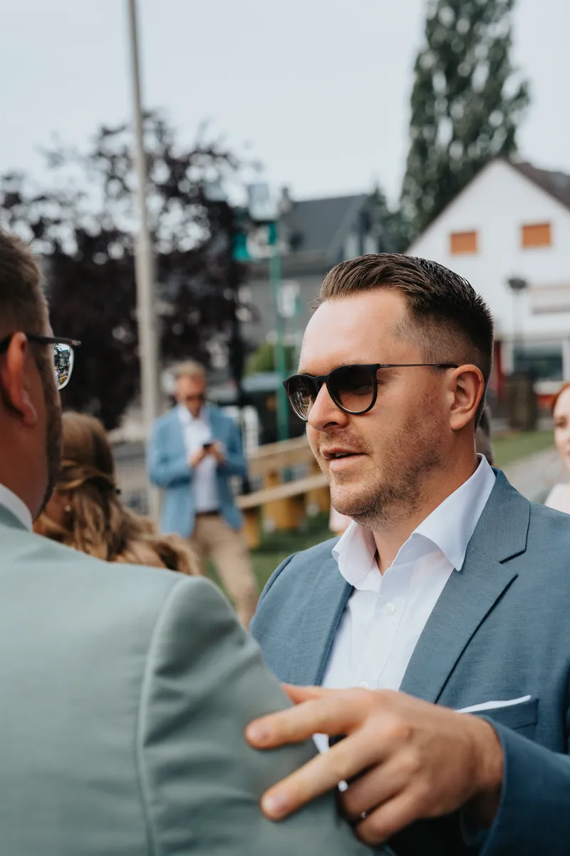 Mein Tag als Hochzeitsfotograf Neunkirchen-Seelscheid begann um 9 Uhr morgens bei Flo und seinem Trauzeugen – und besser hätte man nicht starten können. Die Stimmung war entspannt, herzlich und voller Vorfreude. Flo und sein Trauzeuge machten sich gemeinsam fertig – mit Musik, kleinen Witzen und einem besonderen Ritual.