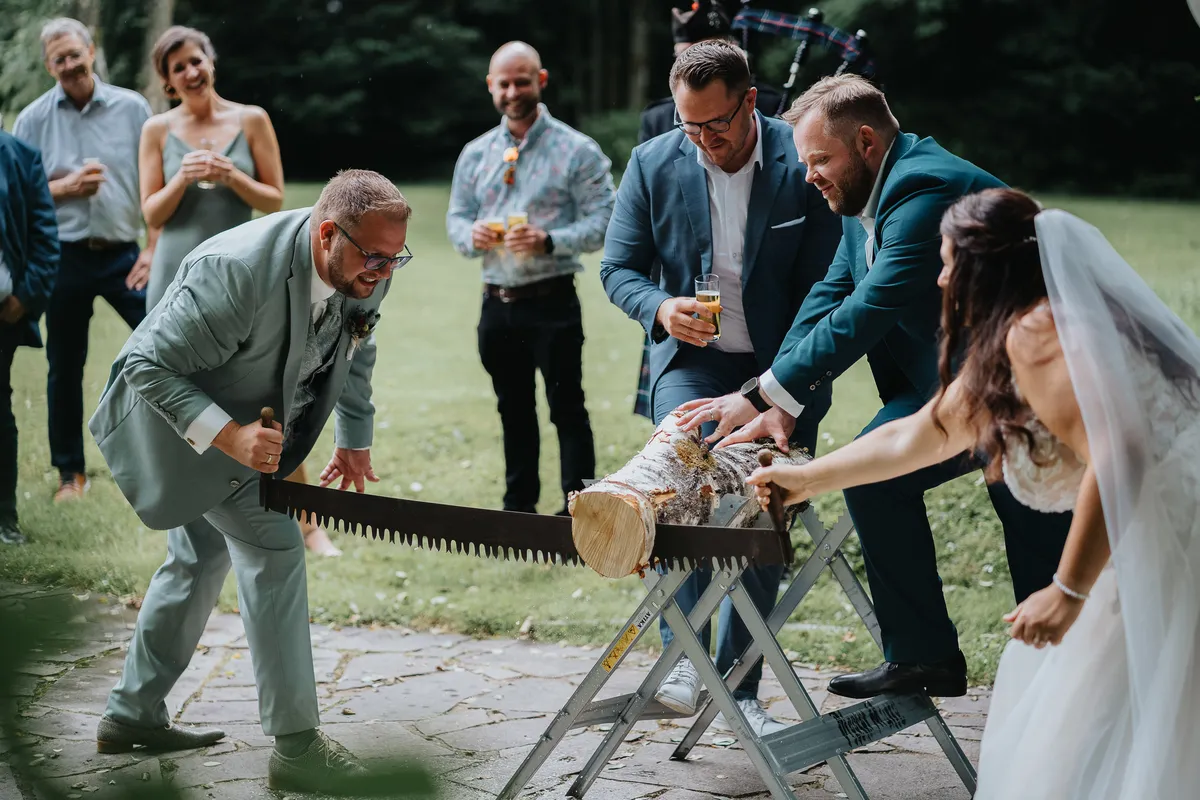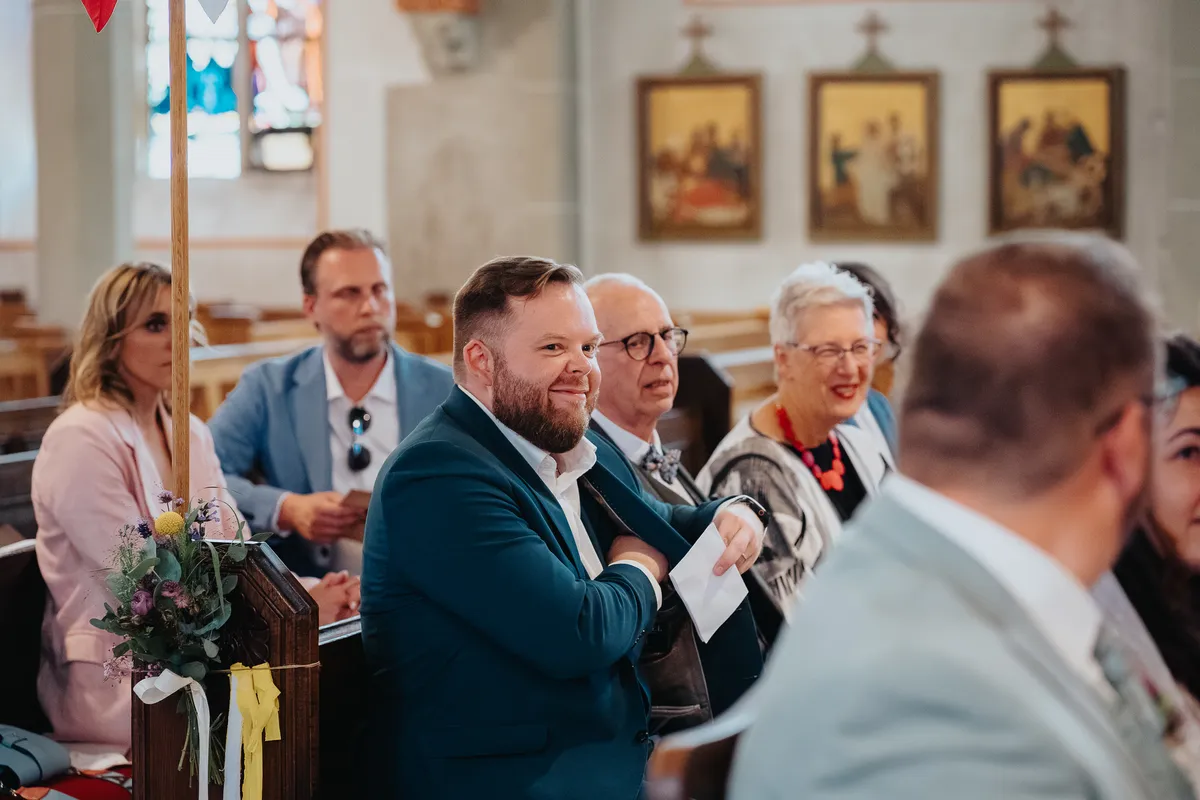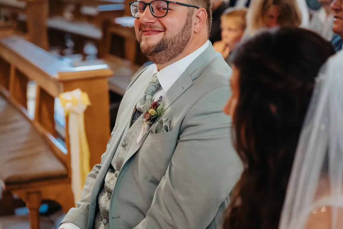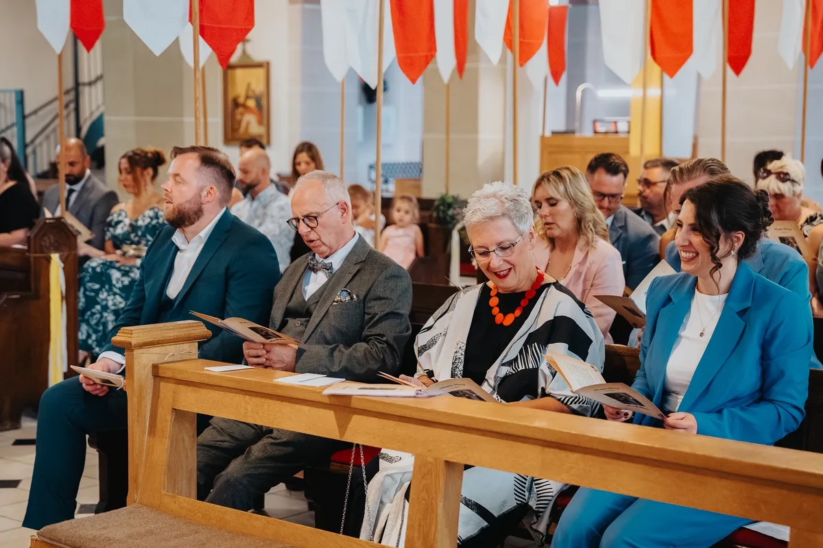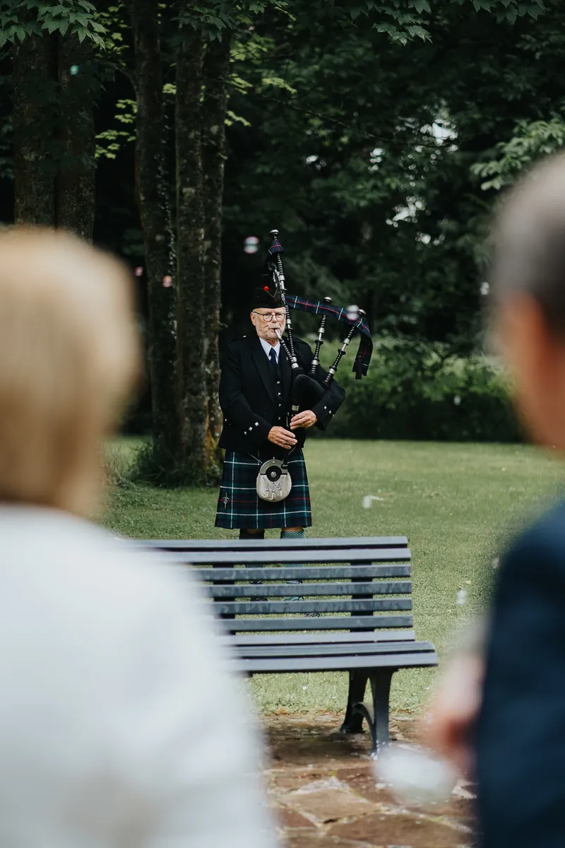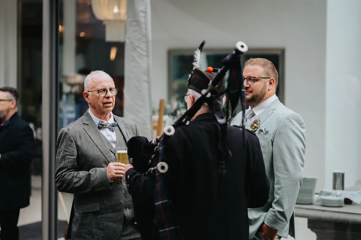 Beim Auszug folgte die große Überraschung: Ein Dudelsackspieler wartete hinten in der Kirche und sorgte für echtes Gänsehautgefühl – nicht nur beim Brautpaar, sondern auch bei allen Gästen.