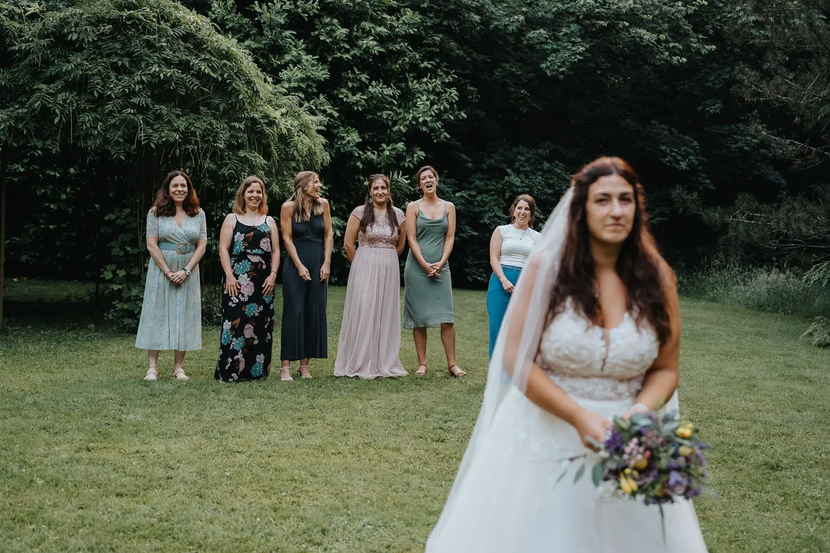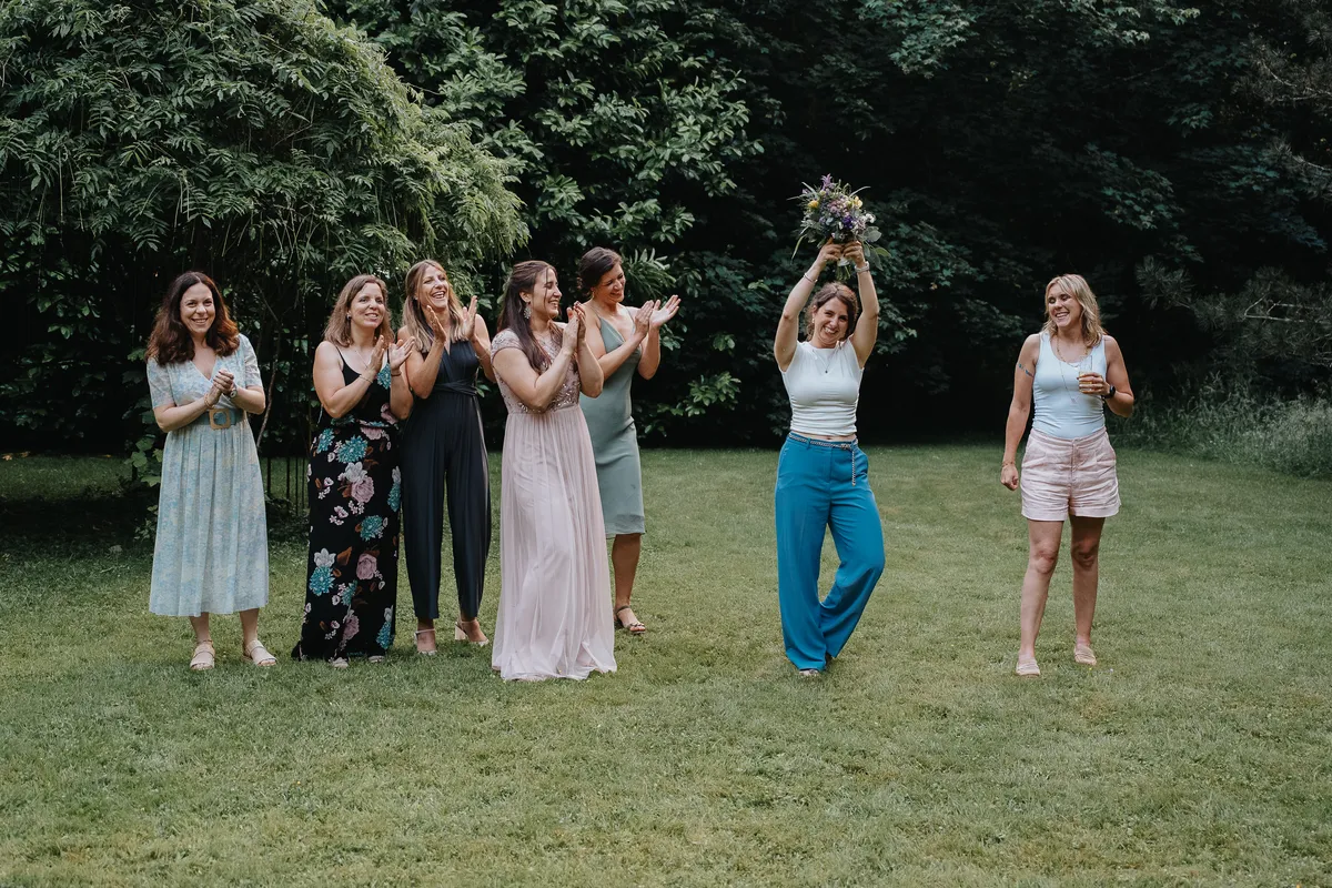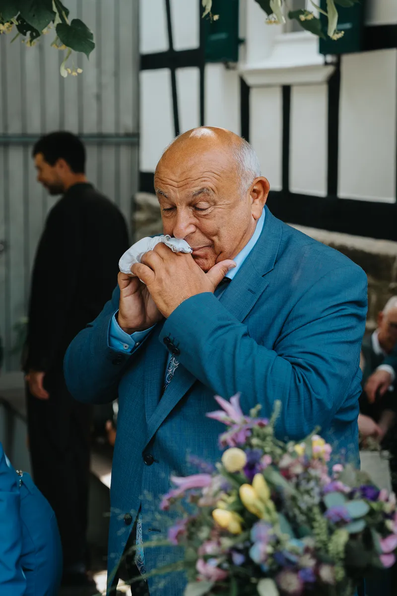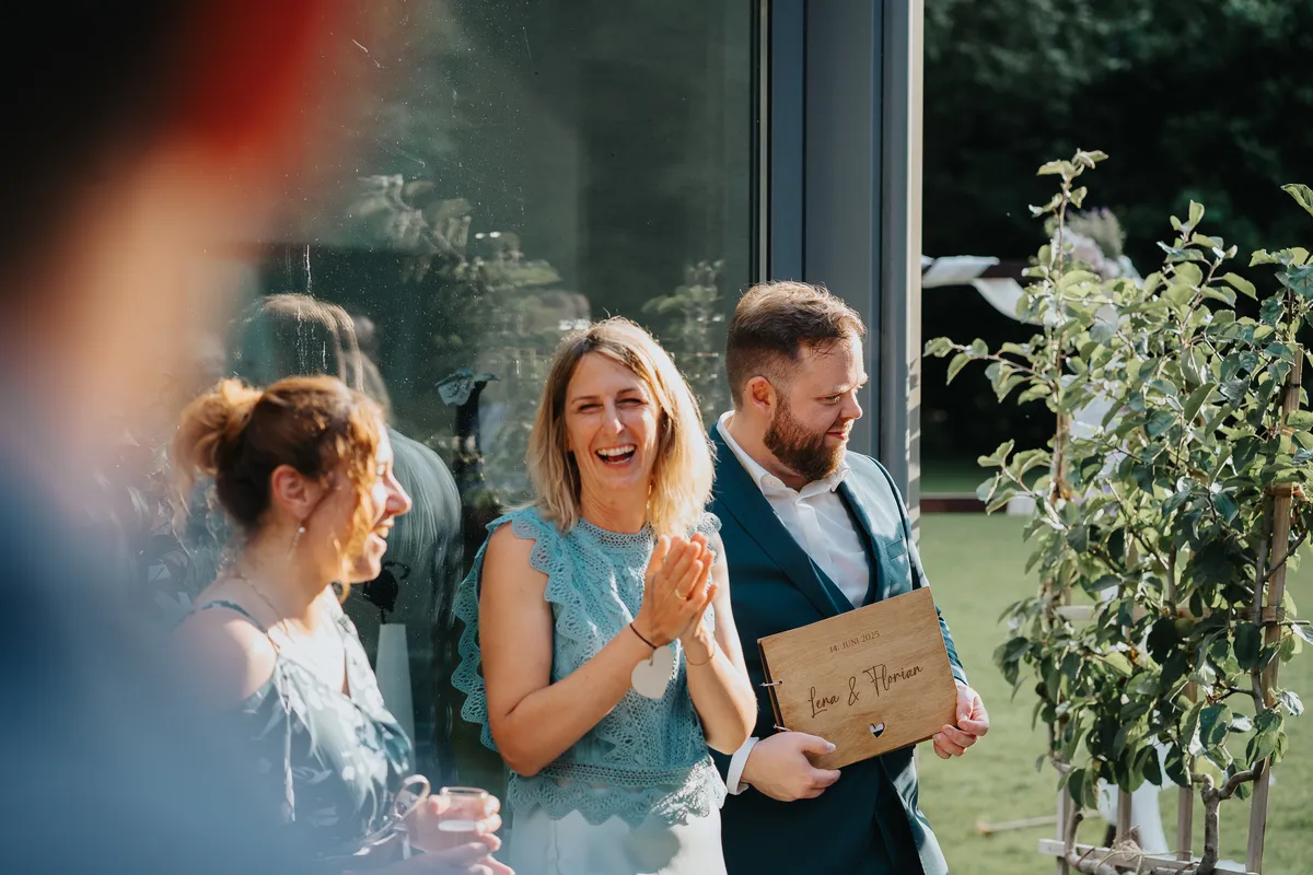 Draußen vor der Kirche war dann Zeit für Gratulationen, Umarmungen und das große Gruppenfoto mit allen Gästen. Für mich als Hochzeitsfotograf in Neunkirchen-Seelscheid war dieser Abschnitt besonders: weil er eine schöne Balance zwischen Tradition, Emotion und Überraschung geboten hat – und so viele ehrliche, starke Bilder entstanden sind.