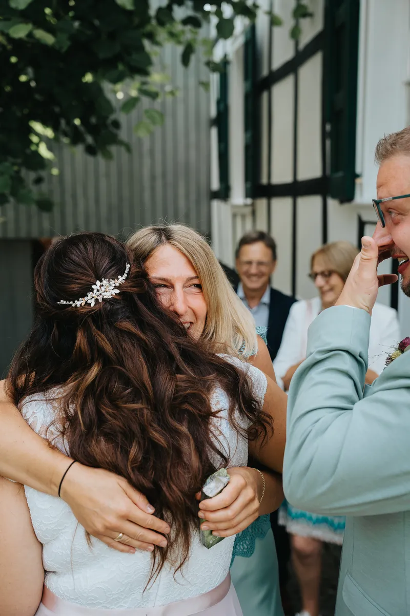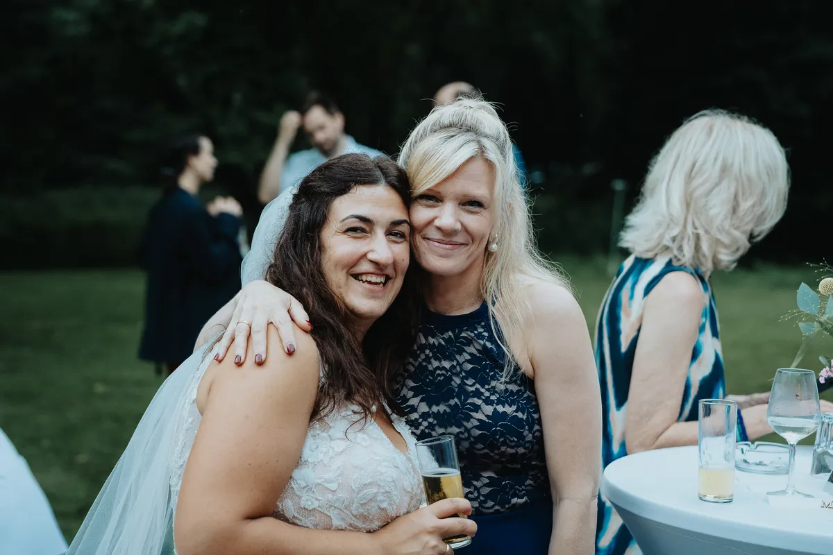 Mitten im Hochzeitstrubel – ein stiller Moment der Braut mit ihrer Schwester
