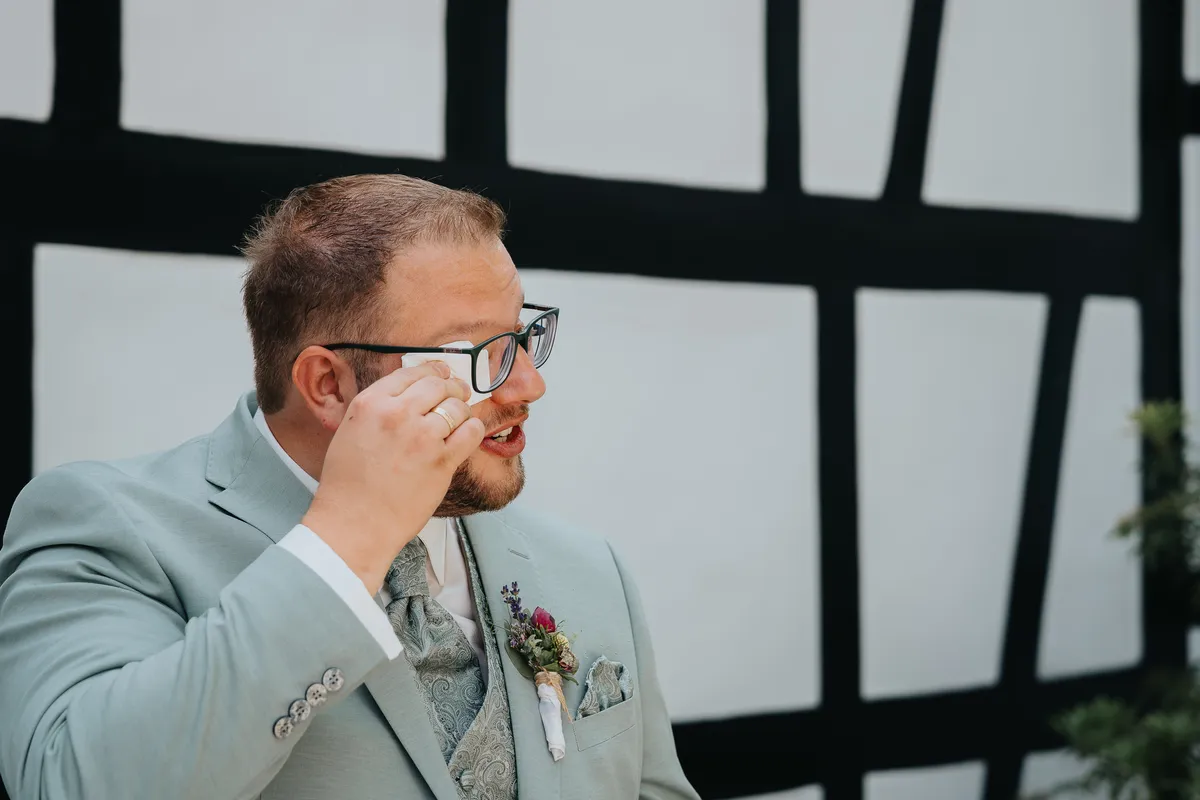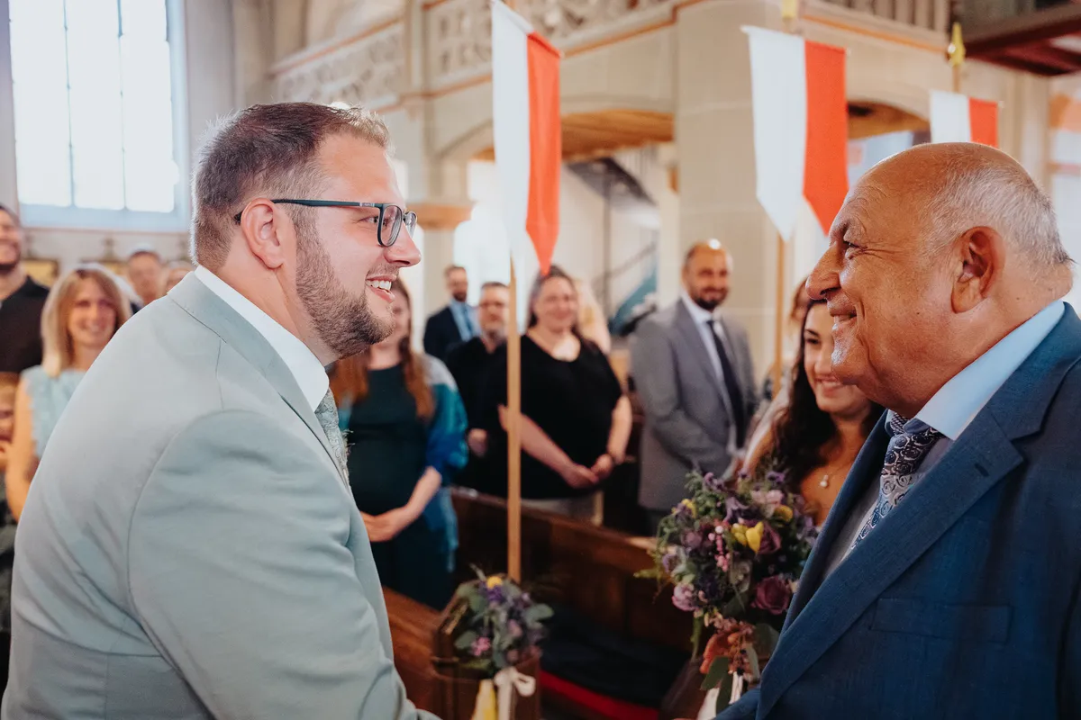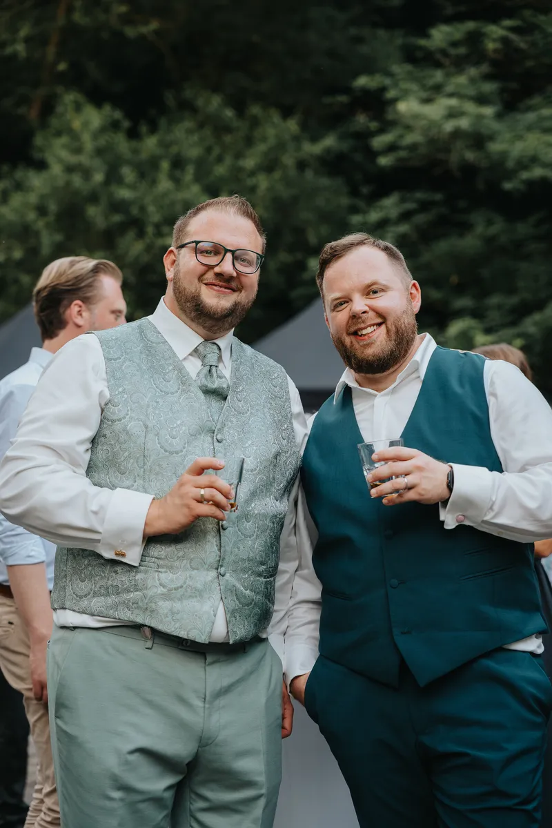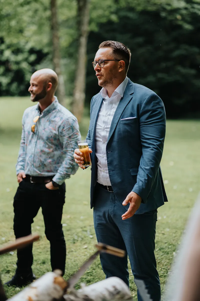 Vor einiger Zeit hatte Flo seinem Trauzeugen eine Flasche Rum geschenkt – verbunden mit der Frage, ob er ihn an diesem Tag begleiten möchte. Über die Monate bis zur Hochzeit wurde bei besonderen Gelegenheiten immer wieder daraus getrunken. Am Hochzeitsmorgen waren dann die letzten beiden Gläser dran – ein persönlicher Moment voller Bedeutung, der ganz ohne große Worte auskam.