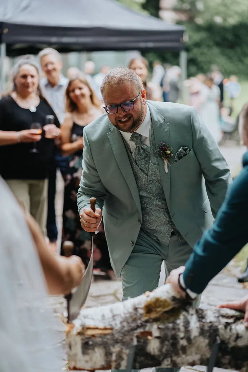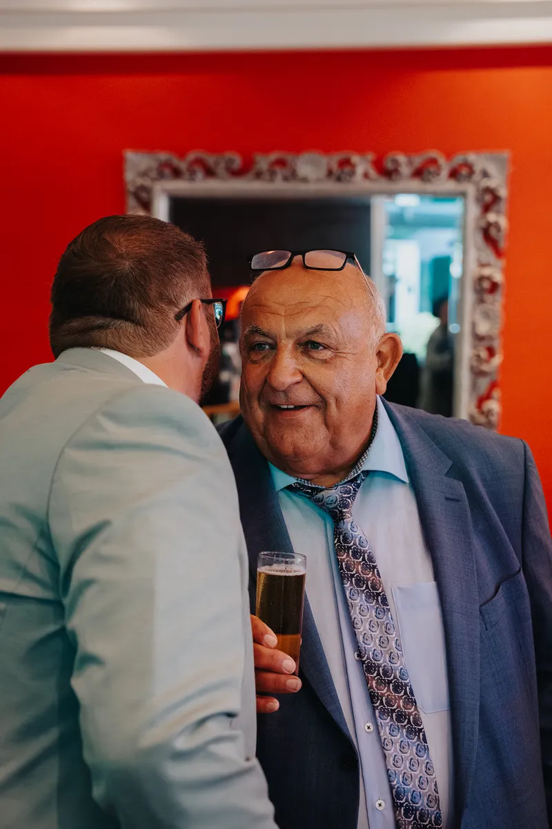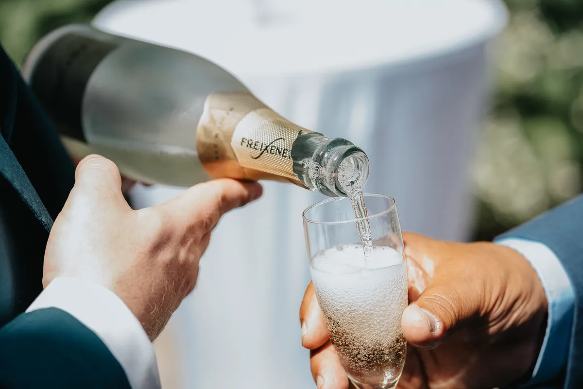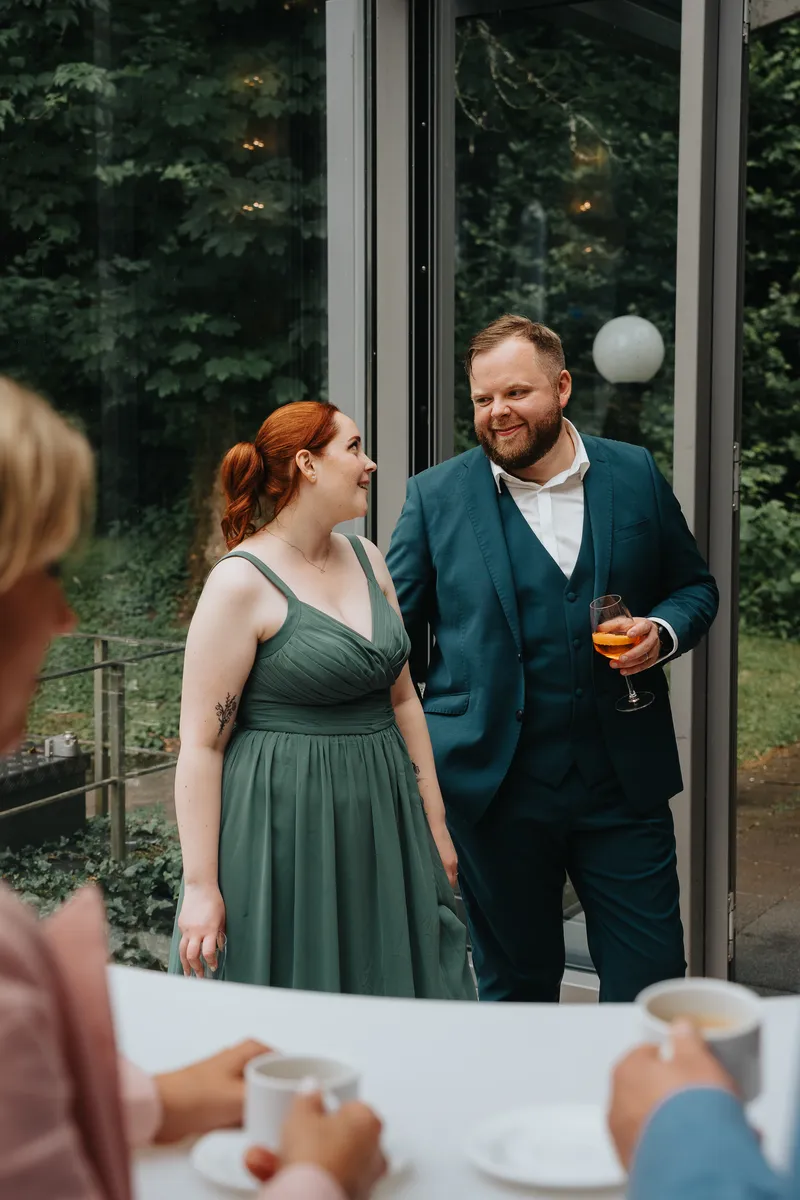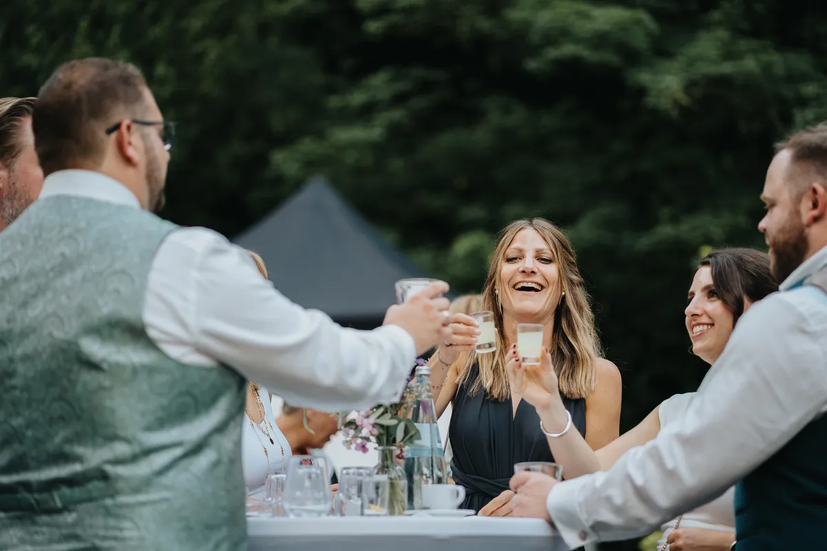 Vor einiger Zeit hatte Flo seinem Trauzeugen eine Flasche Rum geschenkt – verbunden mit der Frage, ob er ihn an diesem Tag begleiten möchte. Über die Monate bis zur Hochzeit wurde bei besonderen Gelegenheiten immer wieder daraus getrunken. Am Hochzeitsmorgen waren dann die letzten beiden Gläser dran – ein persönlicher Moment voller Bedeutung, der ganz ohne große Worte auskam.