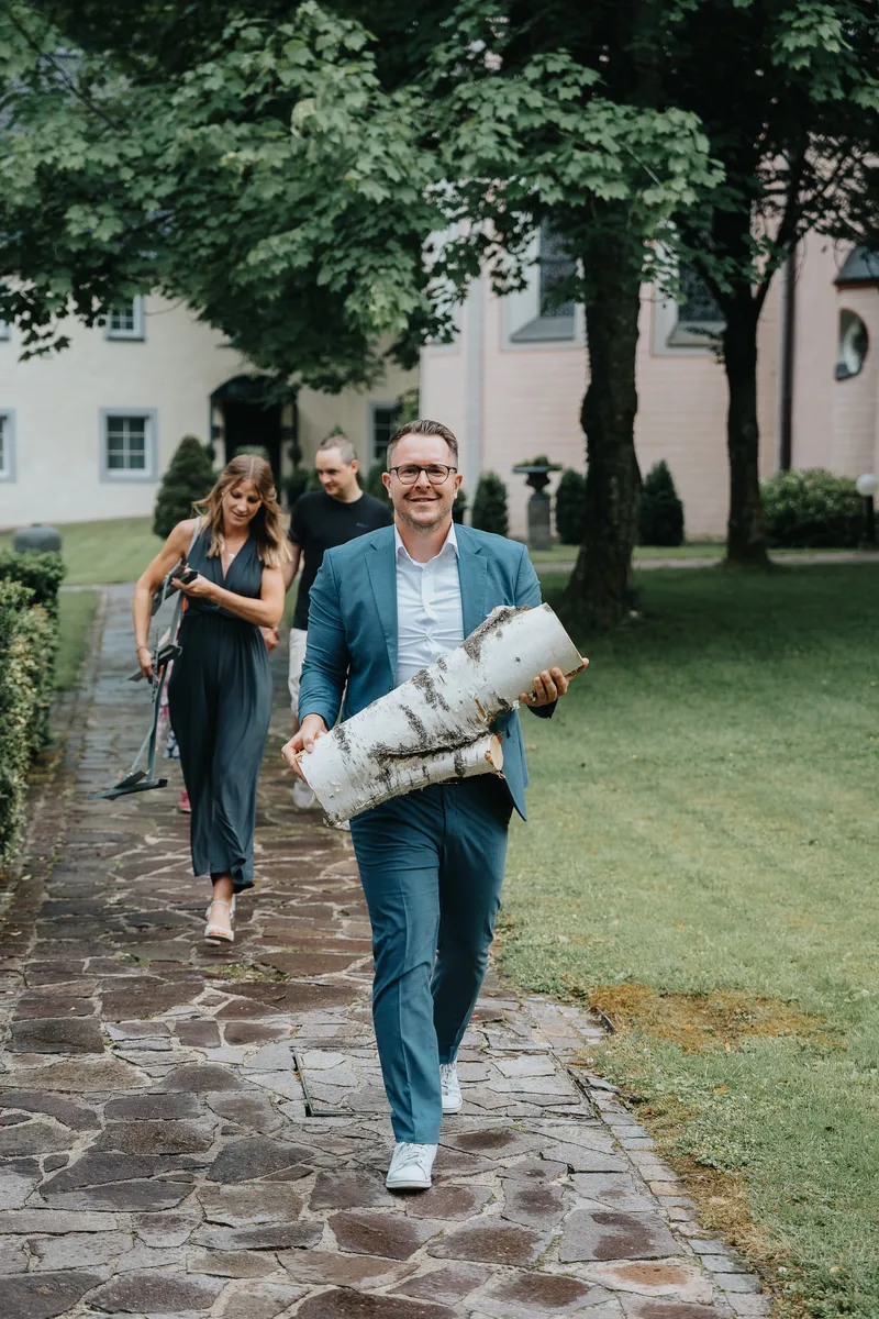 Schon beim Empfang im Innenhof wurden die Gäste mit kühlen Getränken wie Aperol Spritz begrüßt – und sofort war klar: Hier wird entspannt gefeiert. Die Atmosphäre wirkte zugleich rustikal und stilvoll, wie es in den zwei historischen Sälen des Klosterhofs zu erwarten ist.