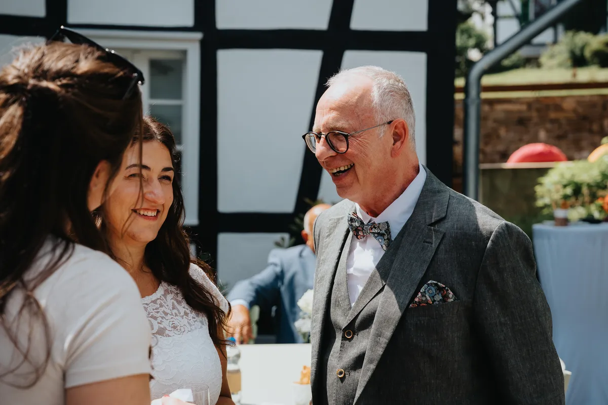 Die anschließende Feier fand im historischen Klosterhof Seligenthal in Siegburg statt – einer ehemaligen Klosteranlage aus dem 13. Jahrhundert, idyllisch gelegen im grünen Tal des Wahnbachs und umgeben von einem wunderschön angelegten Park mit Seerosenteich und Bachlauf.